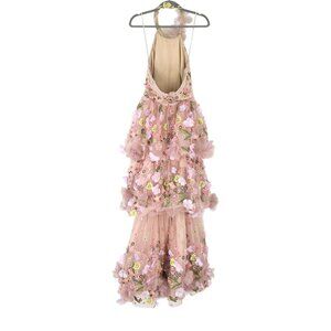 NWT Marchesa Notte Floral Applique Embroidered Tiered Halter Gown