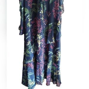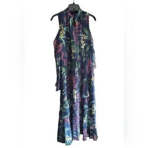 NWT Marchesa Notte Floral Print Cold Shoulder Ruffle Midi Dress