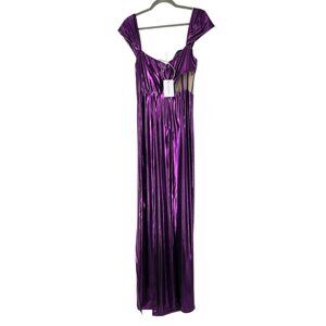 NWT Marchesa Notte Purple Metallic Cutout Off Shoulder Gown