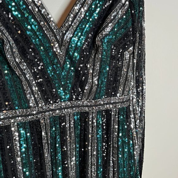 NWT Marchesa Notte Sequin Multicolor Striped V-Neck Long-Sleeve Dress