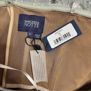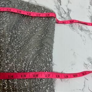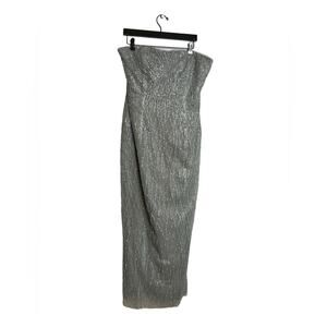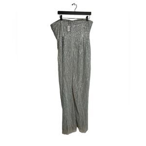 NWT Marchesa Notte Strapless beaded glitter tulle column gown SZ 14 silver