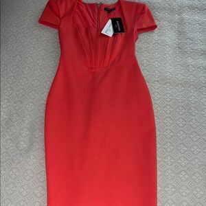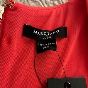 Elevate your style with this stunning coral colored bodycon dress from Marciano. This dress has a beautiful corset detail on the front and a gold two-way zipper all the way down the back. Made of high-quality material and this dress is fully aligned. Fast shipping!