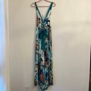 NWT Marciano Lucky Charm Jumpsuit 2 Pleated Wide Leg Floral Lace Up Wedding Guest