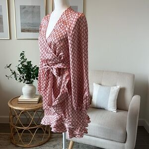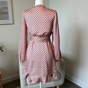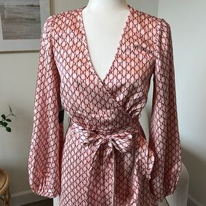 NWT Marciano by Guess Betty Blue Silky Wrap Dress Monogram Blush Red Size 4
