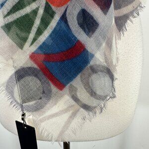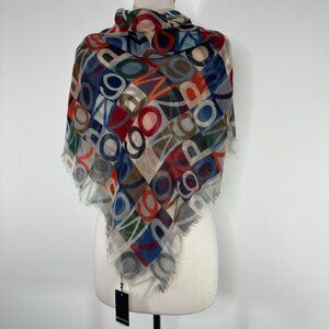 NWT Marco Polo Digital Print Multicolor 100% Wool Woven Scarf 42" x 42"