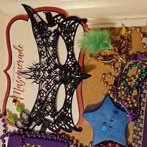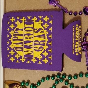 NWT Mardi Gras package # 2 includes: 1 pair of Earrings, 1 mini mask, 2 NWT Black mask, 6 necklaces and 1 coozie & more from Mobile, Alabama the original home of Mardi Gras 🎭 Laissez les bonnes Temps Roulez