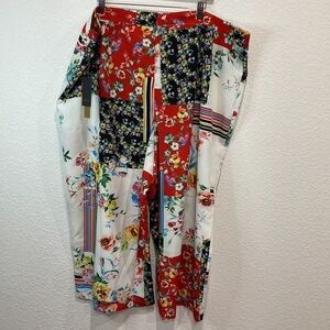 NWT Maree Pour Toi Plus Size Floral Patchwork Print Wide Leg Cropped Pants Sz 22