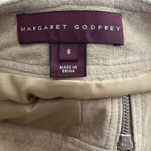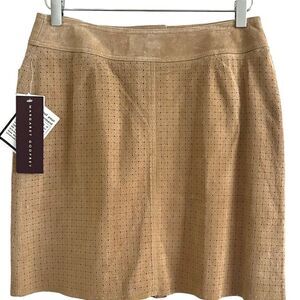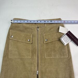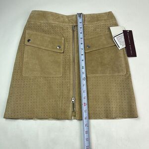 * Margaret Godfrey Leather Mini Skirt Womens 8 Tan Khaki Suede Zipper Pockets Y2K
