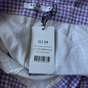 NWT Margaux Dietz Lilac Purple White Checked Culotte Trousers