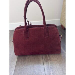 NWT Margot New York Genuine Suede Bowling Bag Tote Burgundy Red RARE HTF VIRAL