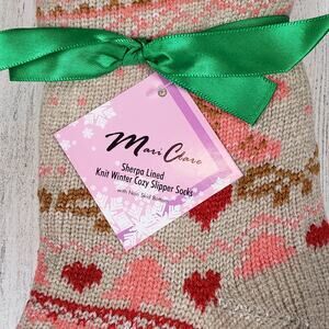NWT Mari Clare Sherpa Lined Knit Winter Holiday Design No-Slip Slipper Socks