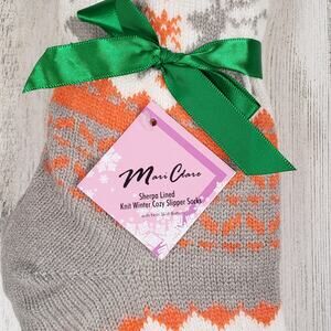NWT Mari Clare Sherpa Lined Knit Winter Reindeer Design No-Slip Slipper Socks