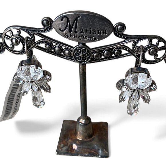 NWT Mariana Art Deco Icy White Swarovski Crystal Glam Leverback Earrings Silver