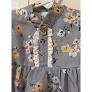 NWT Marie Nicole Gray Yellow Floral Ruffle Romper 9-12M