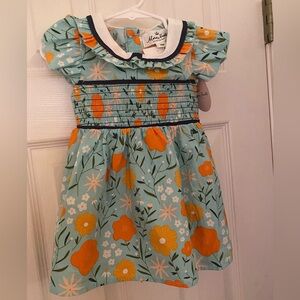 NWT Marie Nicole Smocked Dress Shirt sleeve floral print dress with ruffled collar and smocked front Button up back Size 6-12 months Smoke free home