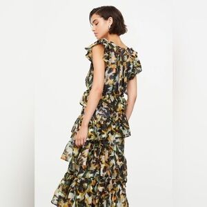 NWT Marie Oliver Marisol Flutter Sleeve Tiered Maxi Dress in Tiger Lily Print, 0