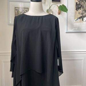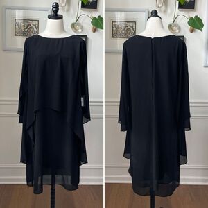 NWT Marina 3/4 Sleeve Chiffon Overlay Shift Dress Black 14