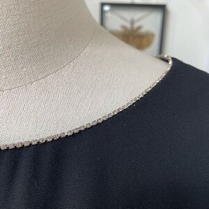 Black with a fine rhinestone band around the neckline. From Marina, this dress features: