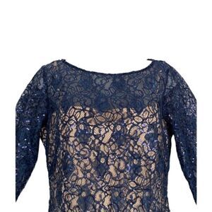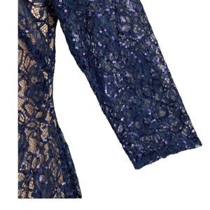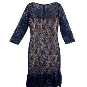 NWT Marina Blue Lace Sequin 3/4 Sleeve Shift Dress Size 8