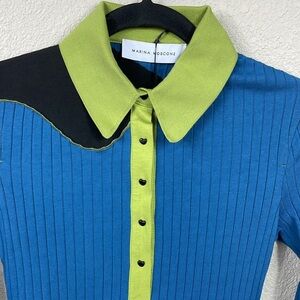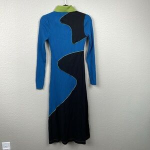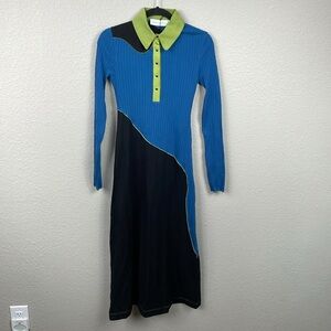 NWT Marina Moscone Collared Maxi Polo Dress Patchwork Long Sleeve Sz XS