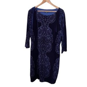 NWT Marina Royal Blue Stretch Velvet Burnout Placement Print Dress Size 18W