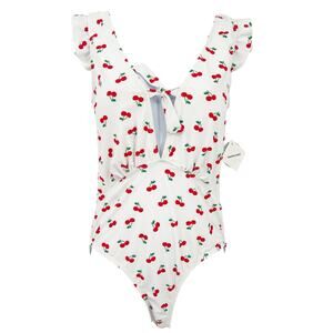 NWT Marina West Womens Beach UPF 50+ Tie Plunge Cherry One Piece Swimsuit Size L