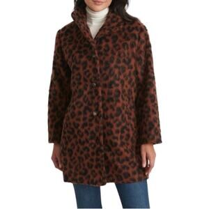 NWT Marine Layer Stephanie Size Medium Cocoon Coat Wool Cheetah Collar Pockets