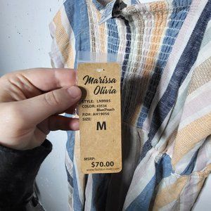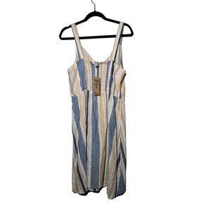NWT Marissa Olivia Women's Linen Blend Striped Sleeveless Dress Size Medium