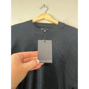 NWT Marissa Webb So Uptight Waffle Knit Crewneck Ribbed Trim Sweater Black