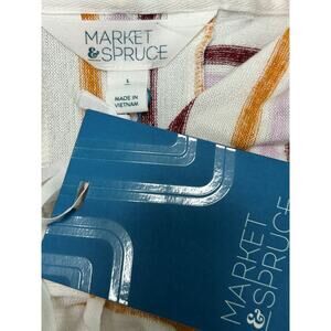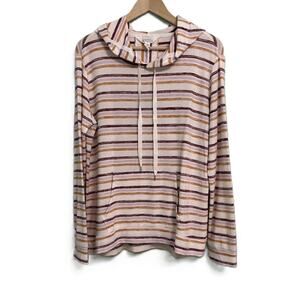 NWT Market & Spruce Pullover Hoodie Multi Color Stripes Long Sleeve Top-Large