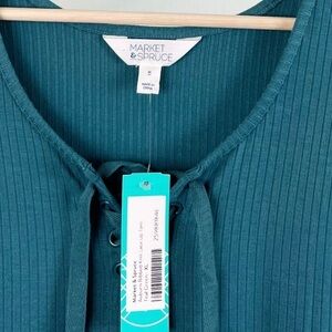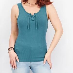 NWT Market & Spruce Ribbed Lace Up Tank Top in Teal
