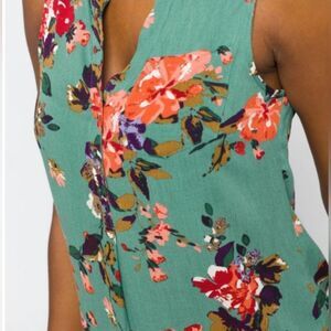 🔺️NWT Market & Spruce Sage Floral Prat Henley Sleeveless Top Large