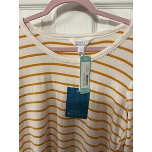 NWT Market & Spruce Zansia Curved Hem Knit Gold and White Striped Top, L