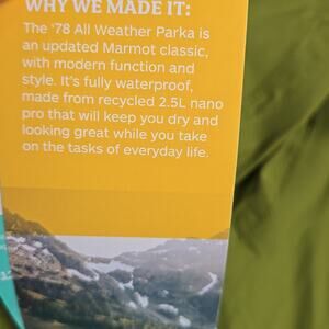 New with tags Marmot Mountainworks Women's '78 All Weather Parka in Cilantro (Green). Size XL