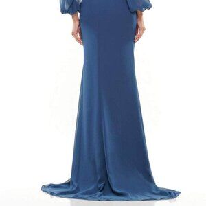 Embrace timeless elegance with the Marsoni by Colors MV1273-1, a gown that exudes classic sophistication. This stunning piece features balloon long sleeves and a ruched bodice, adorned with delicate beading along the shoulders and waistline for added glamour. The graceful V-neckline is mirrored at the full-back, offering a harmonious design. A central zipper closure ensures a secure fit, while the floor-length sheath silhouette skirt flows beautifully, ending in a dramatic train.