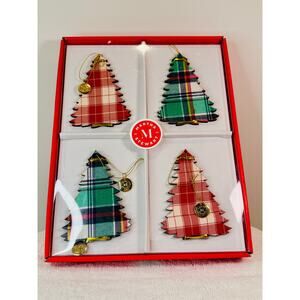 NWT Martha Stewart Holiday Tree Ornament 4 Piece Set Plaid Wooden Christmas Gift