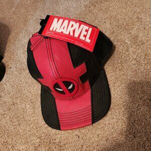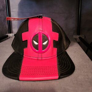 NWT Marvel Deadpool All Leather Snapback Baseball Cap/Hat Red & Black