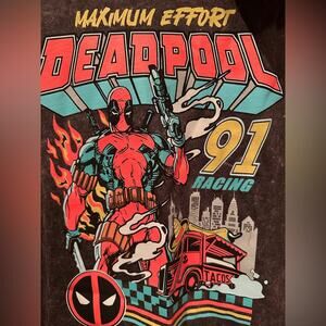 NWT Marvel Disney Deadpool 91 Racing Maximum Effort cropped Tee sz L XL