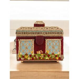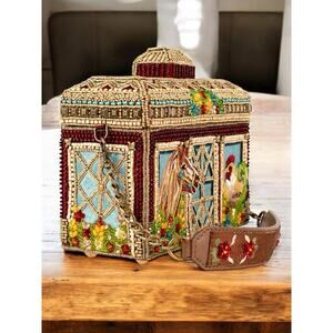 This New With Tags Mary Frances Barnyard Beaded Bag from 2024 is just adorable! Featuring a hand beaded barn shaped bag with farm animals and flowers, this bag brings chicness and whimsy to the country life and is truly a work of art and a conversation starter!