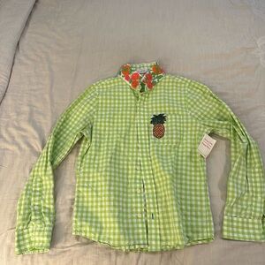 NWT Mary Marshmallow Gingham Button Down Shirt Flamingo Appliqués (22)