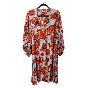 NWT Masai Copenhagen Orange Com Print Nalo Smock Sleeve Midi Dress Womens XXL