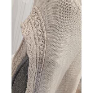 This Mason TurtleNeck Sweater Shawl Poncho is a must-have for any fashion-forward woman. Made of 100% wool, this sweater is soft, stretchy, and breathable, making it perfect for all seasons. Its cable-knit pattern and crochet accents add a touch of designer style, while the turtleneck and sleeveless design make it versatile for any occasion, whether it be casual, formal, or for workwear. This sweater is available in a size M and comes in a beautiful beige cream color that will complement any outfit. Add this classic piece to your wardrobe today! Tags attached w retail price of $285.
