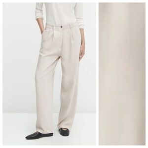 NWT. Massimo Dutti Beige 100% Lyocell Loose Fit Trousers. Size 6.