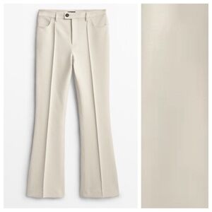 NWT. Massimo Dutti Beige Viscose Blend Trousers with Topstitching. Size 4, 6.