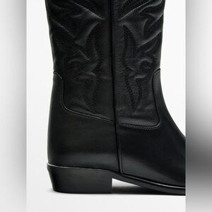 NWT. Massimo Dutti Black Leather Embroidered Cowboy Boots. Size 8.