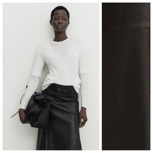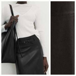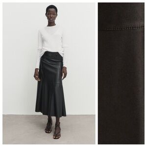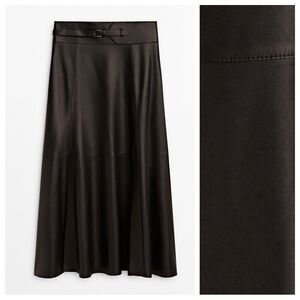 NWT. Massimo Dutti Black Leather Midi A-silhouette Skirt with Belt. Size XS, S.