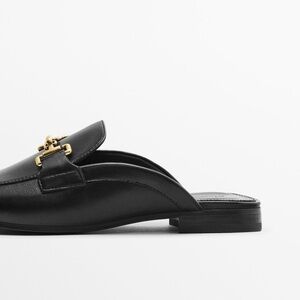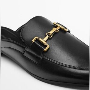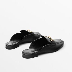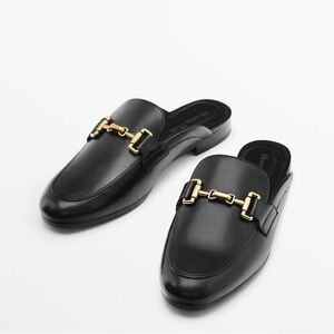 NWT. Massimo Dutti Black Leather Mule Loafers. Backless. Leather lining and insole . Metal buckle. Includes special padded insole for greater comfort. Size 6. Ref. 1538/150. SH24