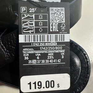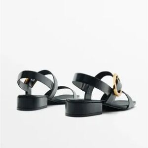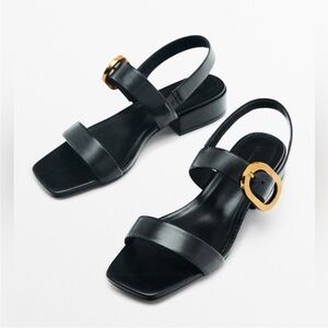 NWT. Massimo Dutti Black Leather Sandals with Buckle Detail. Size 6.