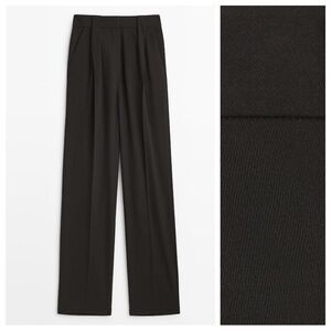 NWT. Massimo Dutti Black Straight-Leg Trousers with Darts. Size 6.