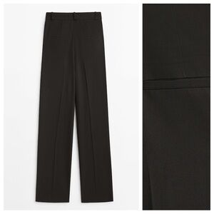 NWT. Massimo Dutti Black Straight-Leg Trousers with Darts, high-rise, two side pockets, two welt pockets on the back, belt loops, front zipper closure concealed by a placket, with hook-and-eye clasp and button. Made from a slight stretch fabric. Size 6. Ref. 5016/980. MD2